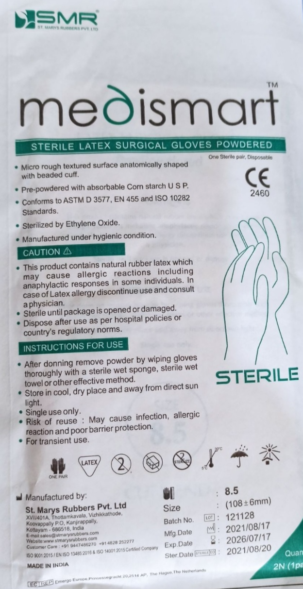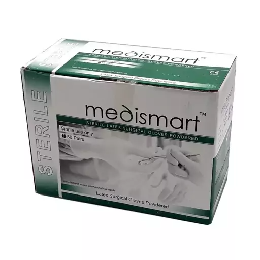 دستکش جراحی مدی اسمارت سایز۸.۵ تاریخ انقضا ۲۰۲۶/۷/۱۷